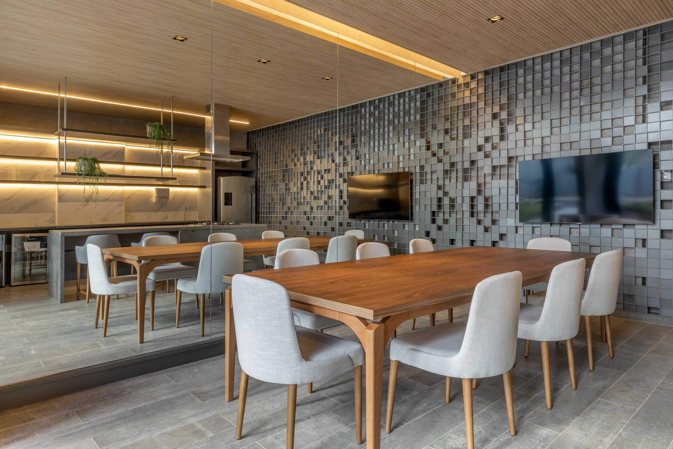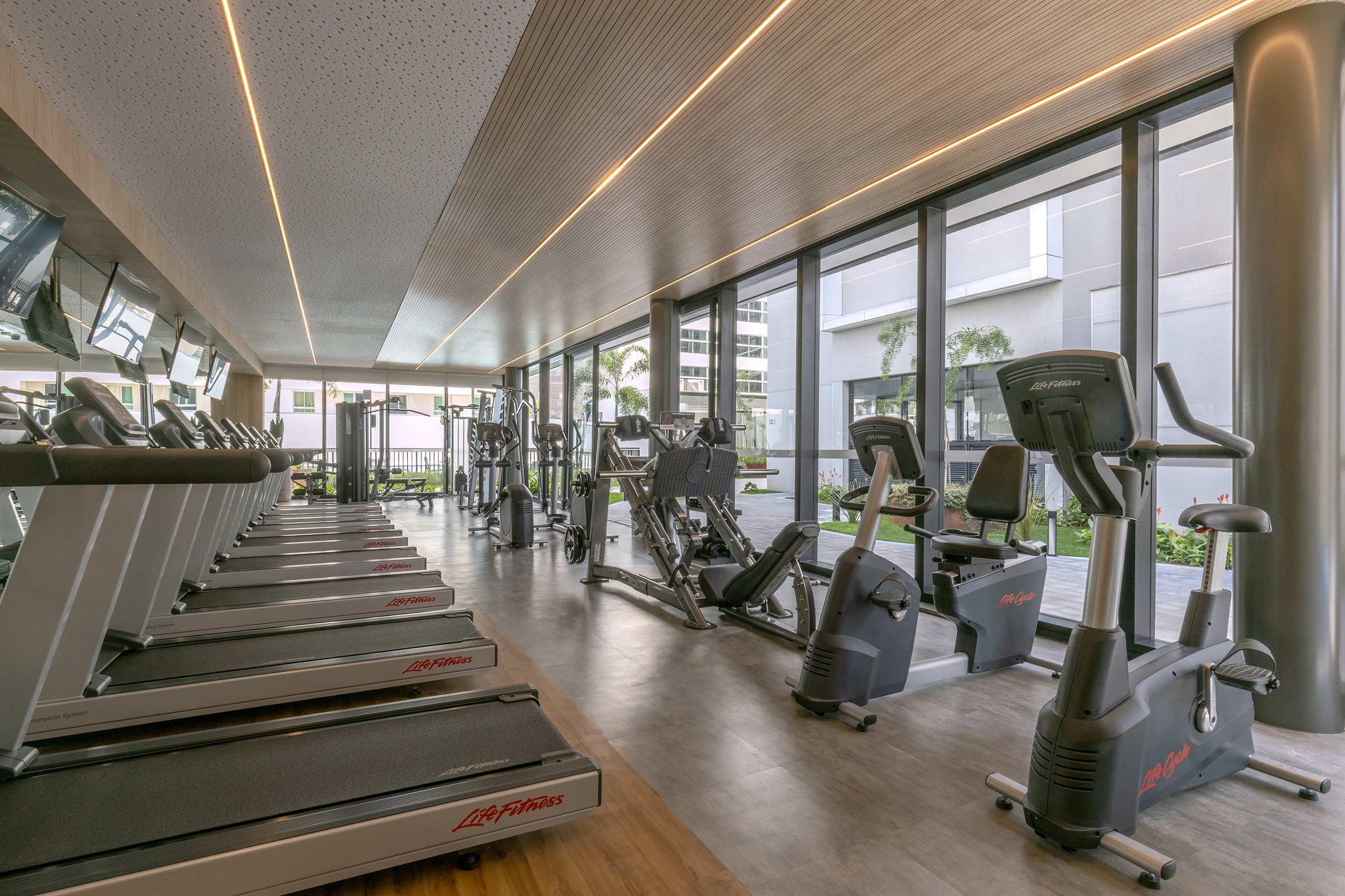 Nas áreas comuns a sustentabilidade é a marca, com iluminação 100% LED, torneiras das pias dos banheiros com controle de vazão, vasos com 2 estágios e irrigação automática para as áreas verdes.